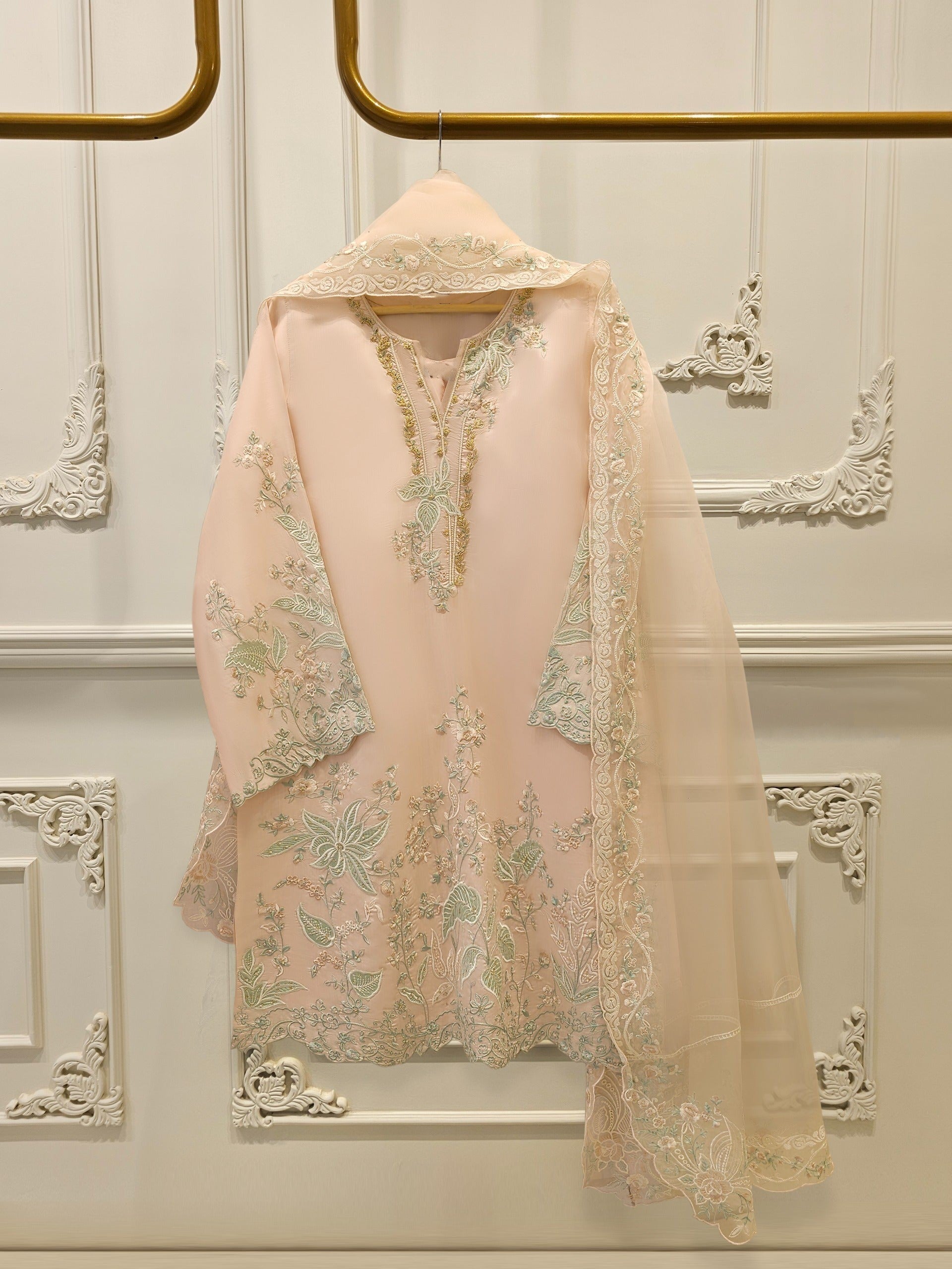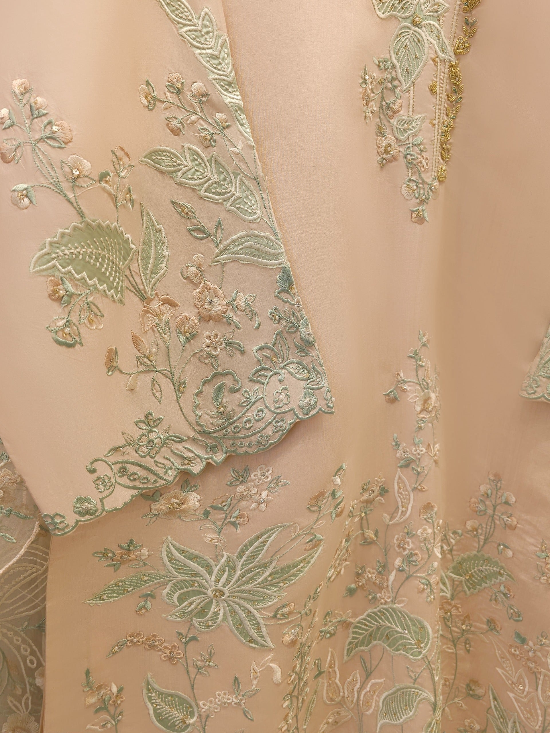 • Organza Front Piece Embroidered Embellished Neckline