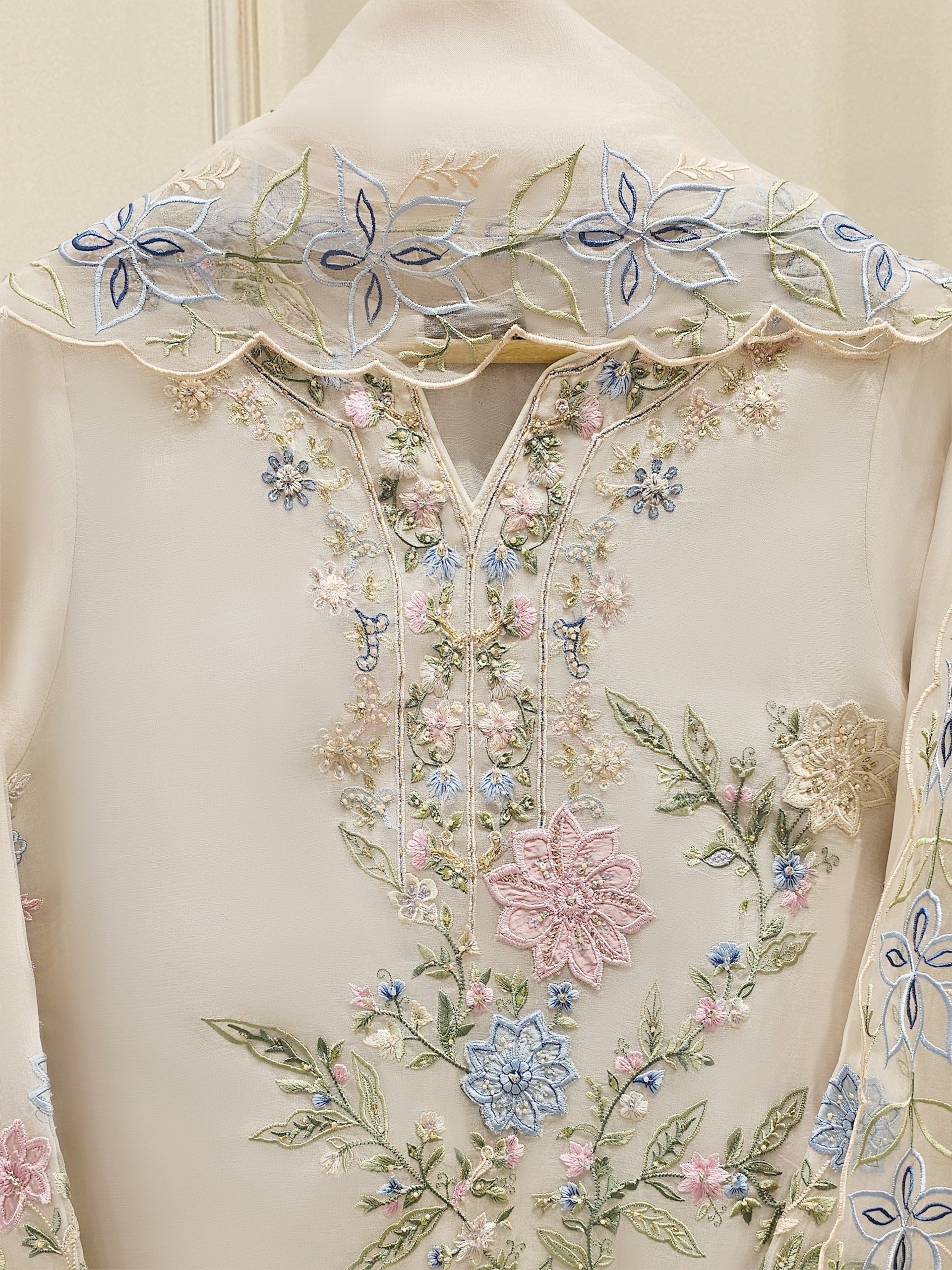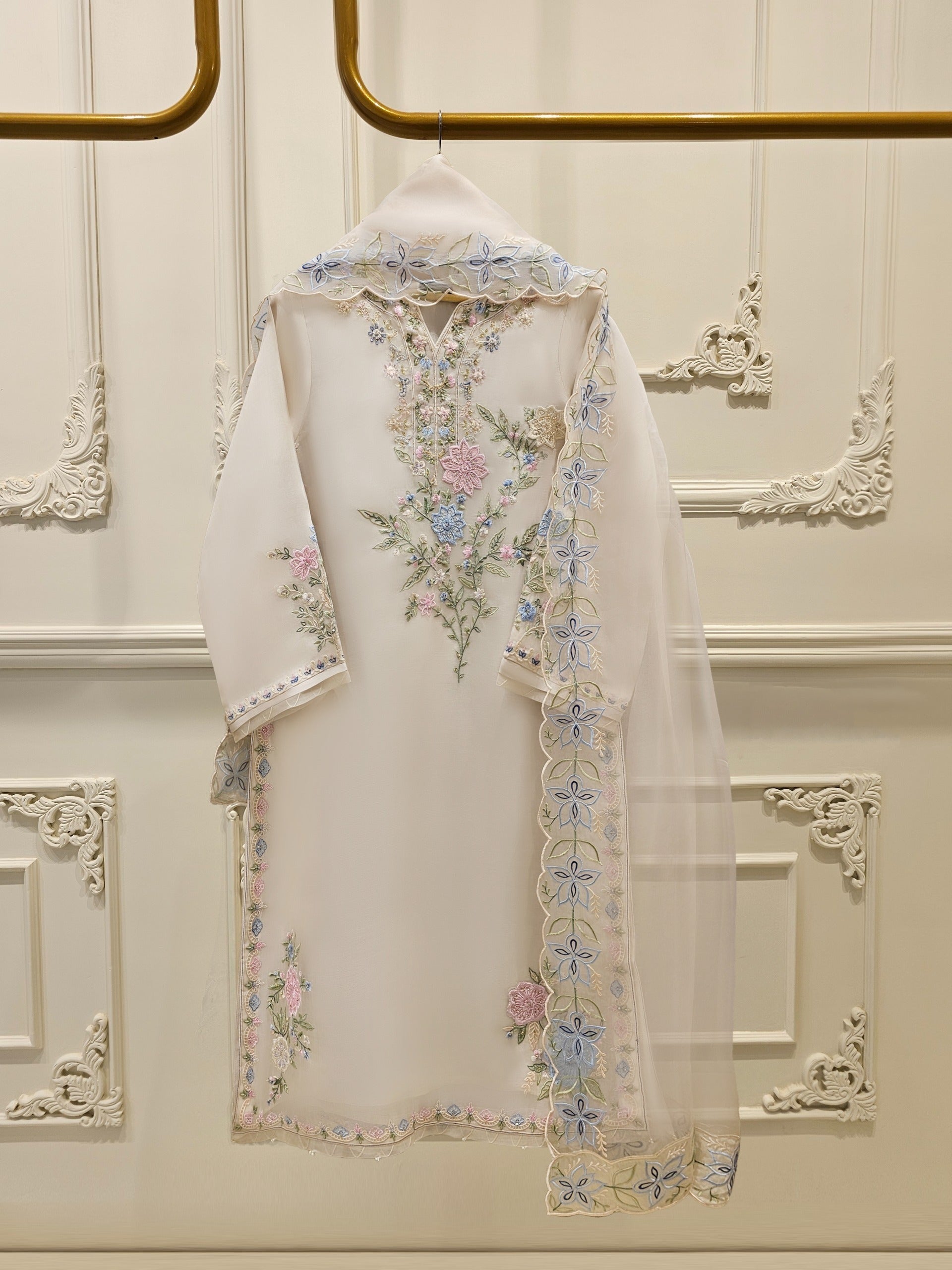 FOUR PIECE PURE ORGANZA SHIRT WITH DUPATTA AND PANTS
